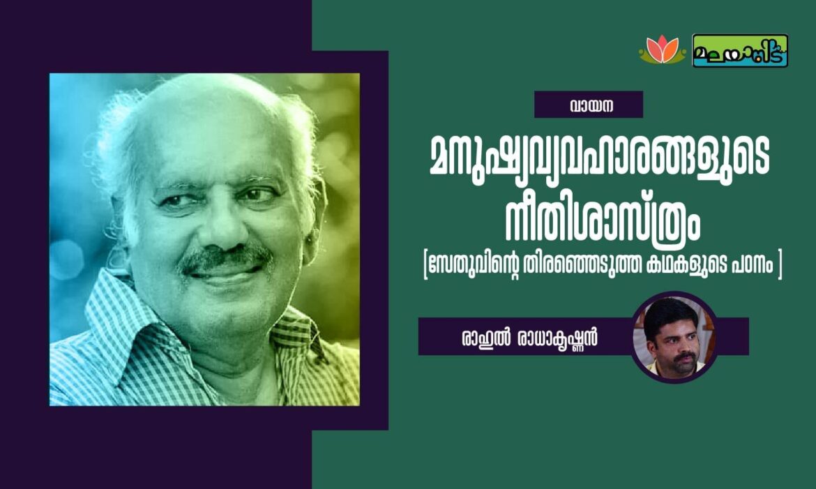 സേതു എഴുതിത്തുടങ്ങിയിട്ട് അര നൂറ്റാണ്ടിലേറെയായി. പല കാലങ്ങളിലായി വിവിധ ധാരകളെ ആസ്പദമാക്കിക്കൊണ്ടുള്ള ചില കഥകൾ പുനർവായനയിൽ തെളിഞ്ഞുനിൽക്കുന്നത് അപൂർവമല്ല. എങ്കിലും അതിസാധാരണമല്ലാത്ത അത്തരം കഥാപരിസരങ്ങൾ സേതുവിന്റെ എഴുത്തുജീവിതത്തിൽ കാണാം. വ്യത്യസ്തമായ സാഹചര്യങ്ങളിൽ എഴുതിയ കഥകളെ ചേർത്തുപിടിക്കുന്ന ഇഴകളിൽ കാലികമായ പ്രസക്തി വായിച്ചെടുക്കാനാവും. കഥകളുടെ പ്രമേയം ഇന്നത്തെ ലോകവിനിമയത്തെ കൂടെ സംബോധന ചെയ്യുന്നത് കൊണ്ടാണ് ഇത് സംഭവിക്കുന്നതത്രെ.