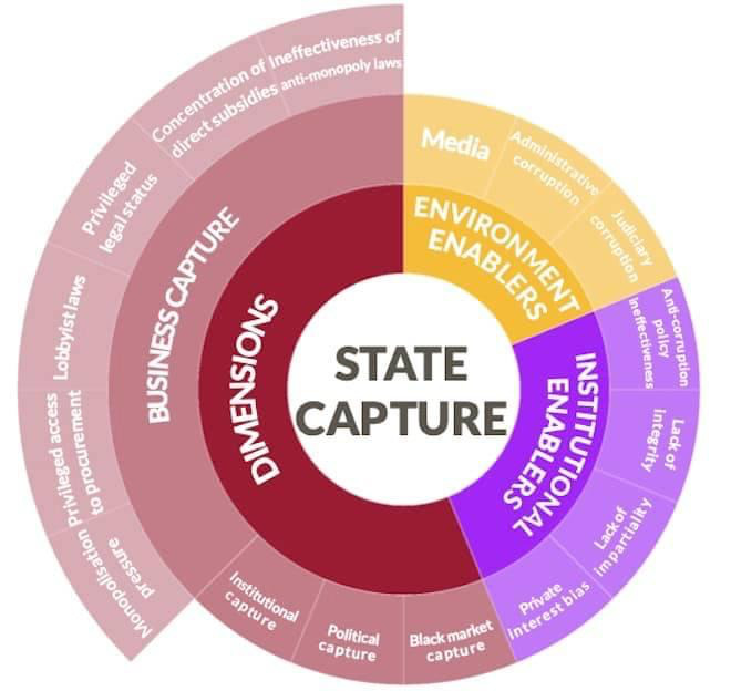 സ്വന്തം താല്പര്യങ്ങൾ സംരക്ഷിക്കുന്നതിനോ സ്ഥിതി മെച്ചപ്പെടുത്തുന്നതിനോ വേണ്ടി ഒരു രാജ്യത്തിന്റെ തീരുമാനങ്ങൾ എടുക്കാനുള്ള പ്രക്രിയയെ അവിഹിതമായി സ്വാധീനിക്കാൻ കച്ചവട-വ്യവസായ ഉടമകളും രാഷ്ട്രീയ-അധികാരകേന്ദ്രങ്ങളും ചേർന്ന് നടത്തുന്ന അഴിമതിയെയും ഗൂഢാലോചനയേയും നിർവ്വചിക്കുന്ന അക്കാദമിക് പദമാണ് “സ്റ്റേറ്റ് ക്യാപ്ച്ചർ “(State Capture) എന്നത്. ഇതിന്റെ അർത്ഥം ശരിയാംവണ്ണം പ്രതിഫലിപ്പിക്കുന്നില്ലെങ്കിലും “ഭരണവ്യവസ്ഥയെ പിടിച്ചെടുക്കൽ” എന്ന് മലയാളത്തിൽ വേണമെങ്കിൽ പറയാം. മിക്ക ജനാധിപത്യ രാജ്യങ്ങളിലും ഇത്തരം ഉദ്യമങ്ങൾക്ക് തടയിടാൻ നിയമങ്ങൾ ഉണ്ടെങ്കിലും സ്വന്തം പണത്താൽ അധികാരത്തിലേറ്റിയ രാഷ്ട്രീയകൂട്ടാളികളുടെ സഹായത്തോടെ നിയമവ്യവസ്ഥയെ അട്ടിമറിക്കുന്നതിൽ കച്ചവട-വ്യവസായ ലോബികൾ വിജയിക്കുന്ന ചരിത്രമാണ് ഇന്ത്യയുൾപ്പെടെ പല രാജ്യങ്ങളിലും നമുക്ക് കാണാനാവുന്നത്.