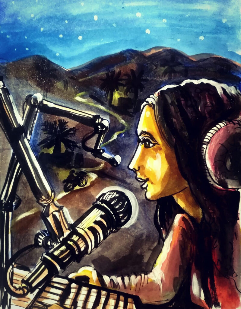ഒരു റേഡിയോ ജോക്കി അങ്ങനെയാണ്. മൗനം കട്ടപിടിച്ച ഇരുട്ടിലേക്ക് നോക്കി വെറുതെ ചോദ്യങ്ങൾ ചോദിച്ചുകൊണ്ടേയിരിക്കും. മരുഭൂമിയിൽ ഉത്തരങ്ങളേക്കാൾ ചോദ്യങ്ങളാണ് കൂടുതലെന്ന് ഇലോഷയ്ക്കറിയാം. വരണ്ട നാക്കുകൊണ്ട് മരുമുള്ളുകളെ വേട്ടയാടിത്തളരുന്ന ഒട്ടകങ്ങൾ ഇത്തരത്തിൽ ഒരായിരം ചോദ്യങ്ങൾ മണൽക്കാറ്റിനോട് ചോദിച്ചിട്ടുണ്ടാവും.. ഇന്നേവരെ ഒരു സഞ്ചാരിയും അത് കേട്ടിട്ടുണ്ടാവില്ല. തേട്ടിയിട്ടും തേട്ടിയിട്ടും അയവിറക്കാനാകാതെ പോയ മൊസാംബിയൻ വിഷക്കൂണുപോലെ വിശാലമായ ഈ മണലാരണ്യത്തിൽ എവിടെയോ അവ ഘനീഭവിച്ചുകിടപ്പുണ്ടാവുമെന്ന് ഇലോഷയ്ക്ക് തോന്നി.