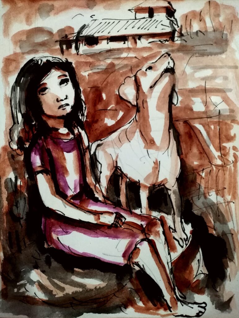 ചുവരിലെ ചിത്രരചന പാതിവഴിക്ക് നിർത്തിയ അനുജൻ താരയെ നോക്കി മന്ത്രിച്ചു, “വെള്ളം.” അച്ഛന്റെ മടിയിൽ നിന്ന് ചാടിയിറങ്ങി, ഗ്ലാസ്സുമായി വെള്ളം വച്ചിരിക്കുന്ന പാത്രത്തിനരികിലേക്ക് അവൾ നടന്നു. ശേഷിച്ച വെള്ളം ഗ്ലാസിലേക്ക് പകർത്തി അനുജന് നൽകി. അവനതിൽ നിന്നൊരു കവിൾ കുടിച്ച ശേഷം തിരിഞ്ഞു.