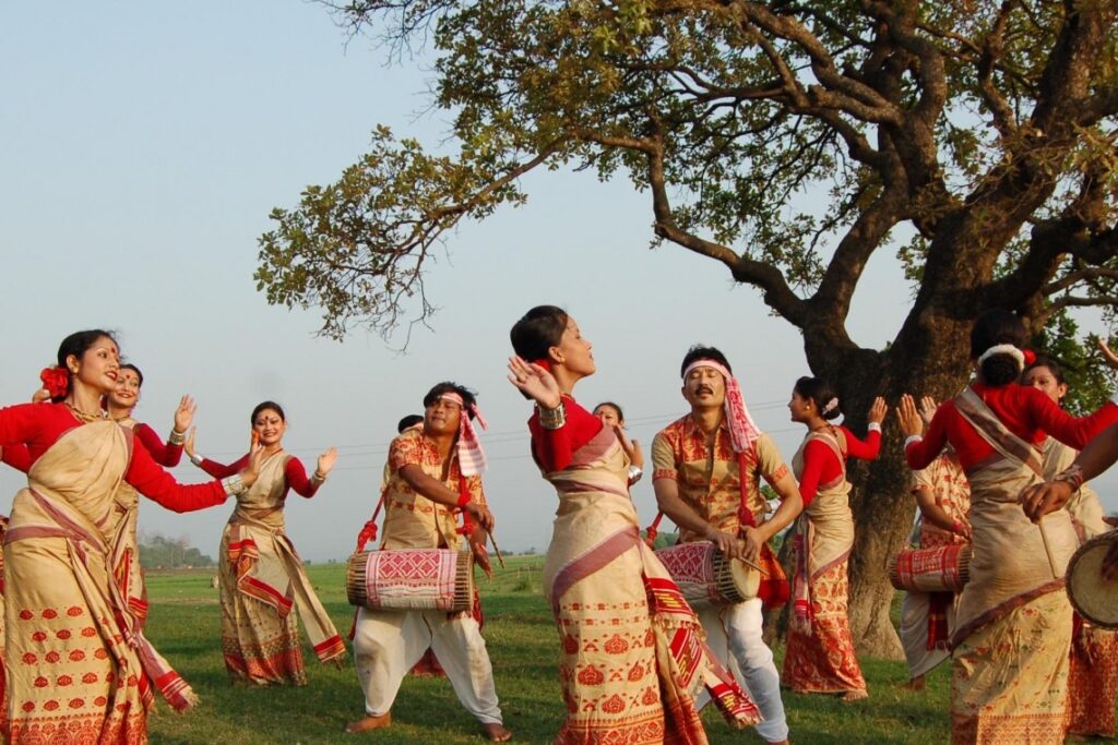 പുതുവർഷ പിറവിയിൽ അസംകാർ മതഭേദമില്ലാതെ വളരെ പ്രാധാന്യത്തോടെ ആഘോഷിക്കുന്ന ഈ കാർഷികോത്സവം വിളവു തരുന്ന പ്രകൃതിയോടുള്ള മനുഷ്യന്റെ സ്നേഹ പ്രകടനം തന്നെയാണ്. രാത്രി മുതൽ പുലരുവോളം സദ്യവട്ടങ്ങളും നൃത്തസംഗീതവുമെല്ലാമായി വലിയൊരാഘോഷം. ബൊഹാഗ് ബിഹുവിനോടനുബന്ധിച്ച് അരങ്ങേറുന്ന നാടോടി കലാരൂപമായ ബിഹുനൃത്തം ഈ ആഘോഷത്തിന് പൊലിമ കൂട്ടുന്നു. ഒരു ദിവസം വൈകുന്നേരം കുറച്ചകലെയുള്ള പാടത്ത് വെച്ച് നടന്ന ബിഹുഡാൻസ് ആസ്വദിക്കാനുള്ള അവസരവും ഞങ്ങൾ മലയാളികൾ പാഴാക്കിയില്ല. കൊയ്ത്തു കഴിഞ്ഞ പാടത്തു നിന്ന് കൊട്ടിപ്പാടി അവതരിപ്പിച്ചിരുന്ന ബിഹു നൃത്തം പിൽക്കാലത്ത് നഗരവേദികളിലേക്ക് വരെ വഴിമാറിയിട്ടുണ്ട്. ചുവടുകളിലും ഉടയാടകളിലും സംഗീതത്തിലുമെല്ലാം അസമിന്റെ തനതു പാരമ്പര്യം കാത്തുസൂക്ഷിക്കുന്നുണ്ട് ഈ നൃത്തരൂപം. ധോലക്, പെപ്പ, തുടങ്ങിയ വാദ്യോപകരണങ്ങളുമായി പുരുഷന്മാർ പാടുമ്പോൾ പരമ്പരാഗത വസ്ത്രമായ ‘മേഘല ഛദർ’ (ചുവപ്പ് കരയോടെ ചന്ദനനിറത്തിലുള്ള വേഷ്ടിയും മുണ്ടും) ധരിച്ച് ആഭരണങ്ങളിഞ്ഞ് മുടിയിൽ അസമിന്റെ സംസ്ഥാന പുഷ്പമായ കൗപ്പൽപ്പൂവും ചൂടിയെത്തുന്ന യുവതികൾ നൃത്തമാടും. ദ്രുതഗതിയിലുള്ള കൈകാൽ ചലനം, അരക്കെട്ടിന്റെ താളാത്മകമായ ചാഞ്ചാട്ടം എന്നിവകൊണ്ട് ഏറെ ആകർഷകമാണ് ഈ നൃത്തം. പുതുവർഷത്തെ വരവേൽക്കുന്നതിനുള്ള ഉണർത്തുപാട്ടുകളാണ് ബിഹു ഗാനങ്ങൾ. ഇവ ഭൂമി ദേവിയെ ഉത്തേജിപ്പിക്കുമെന്നും അങ്ങനെ നല്ല വിളവ് ലഭിക്കുമെന്നും ഇവിടുത്തെ കർഷകർ വിശ്വസിക്കുന്നു. ലളിതമായ ഭാഷയിലുള്ള ബിഹു ഗാനങ്ങൾ നാടോടി സംഗീതത്തിന്റെ അകമ്പടിയോടെ അവതരിപ്പിക്കുന്നതിനാൽ ഏറെ ജനപ്രിയമായി മാറിയിട്ടുണ്ട്. ചില ഗാനങ്ങളിൽ സാമൂഹിക പ്രശ്നങ്ങൾ ഹാസ്യാത്മകമായി അവതരിപ്പിക്കുന്ന രീതിയുമുണ്ട്.