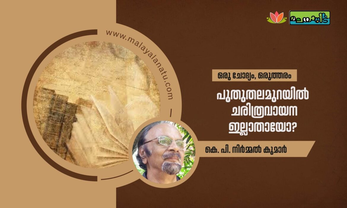 ചോദ്യം: ചരിത്രത്തെ വളച്ചൊടിക്കുകയും തിരുത്തിയെഴുതുകയും പാഠ പുസ്തകങ്ങളിൽ നിന്ന് തന്നെ ഒഴിവാക്കുകയും ചെയ്യുന്നൊരു കാലഘട്ടത്തിലാണല്ലോ നമ്മൾ ജീവിക്കുന്നത്. ചരിത്രം തന്നെ പഠിക്കേണ്ടതില്ലെന്നും അത് ജീവസന്ധാരണത്തിനു ഉതകില്ലെന്നും വരെ വാദങ്ങൾ ഉയരുന്നു. എങ്ങിനെ കാണുന്നു?