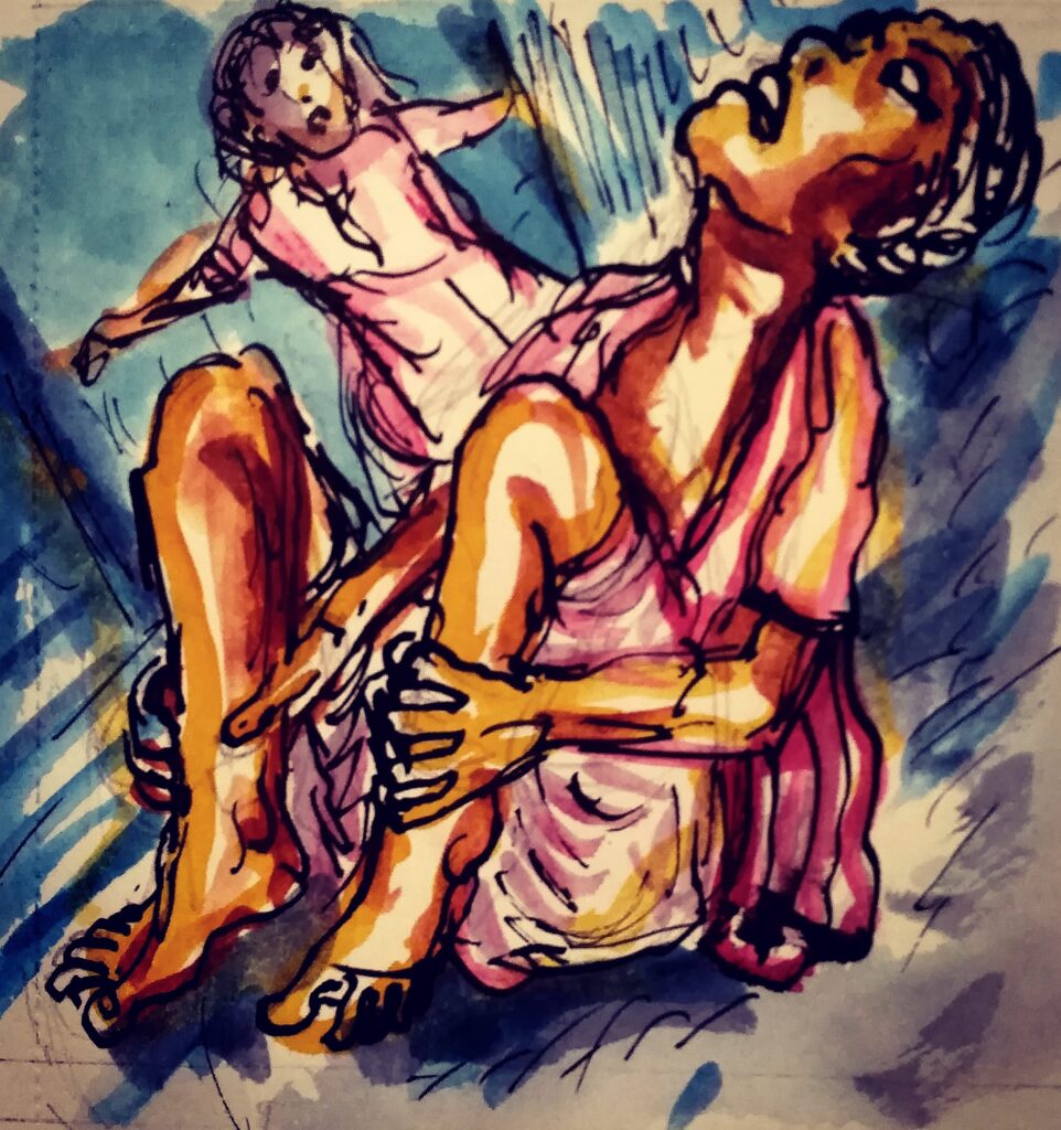 ഇനിയുമൊഴുക്കിവിടാൻ കണ്ണീർ ഇല്ലാത്തതിനാലാകാം അവൾ അയാളെ ഇറുകെ പിടിക്കുക മാത്രം ചെയ്തു. ഒന്നും മിണ്ടാതെ. വാതിലിൽ ശക്തമായ മുട്ട്. നിശബ്ദതയിൽ പ്രതിധ്വനിച്ച ആ ഒച്ച രണ്ട് പേരുടെയും ഉടലാകെ കുടഞ്ഞിട്ടു.