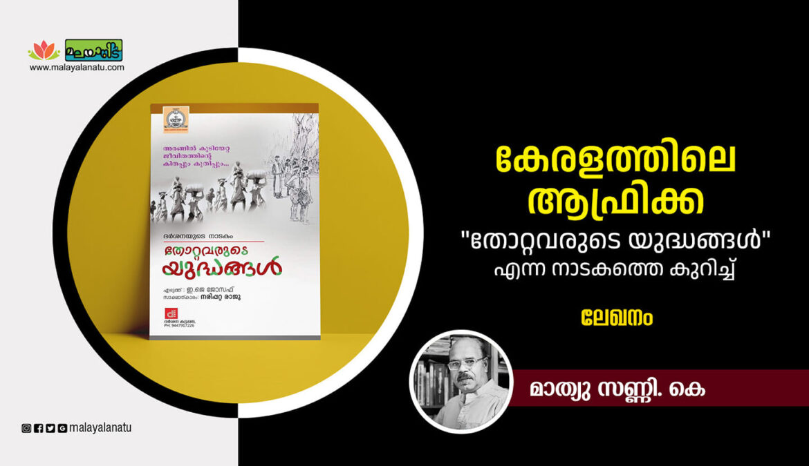 ഹൈറേഞ്ചിലെ ജീവിതം ഇത്ര കണ്ട് സങ്കീർണ്ണമാക്കിയത് റവന്യു-വന വകുപ്പുകളുടെ അനാസ്ഥയും കോടതി വിധികളും പ്രകൃതിയുടെ താണ്ഡവവും എല്ലാം കുടി ചേർന്നാണ്. ഇടുക്കിയെ മാനവികമായ കാഴ്ചപ്പാടിൽ കാണേണ്ട കാലം അതിക്രമിച്ചിരിക്കുന്നു. അതിജീവനത്തിനായി പോരാടുന്ന ഈ നാടിന്റെ നൊമ്പരങ്ങളും മുറിവുകളും വർത്തമാനകാല പ്രതിസന്ധിയും മലയാളികളെ ആഴത്തിൽ സ്പർശിക്കാൻ പാകത്തിലുള്ള ഈടുറ്റ സാഹിത്യ രചനകൾ പിറക്കേണ്ട കാലവും അതിക്രമിച്ചിരിക്കുന്നു. ഈ ദിശയിലുള്ള നല്ല തുടക്കമാണ്, ഒരു ഓർമ്മപ്പെടുത്തലാണ്, അടയാളപ്പെടുത്തലാണ് ശ്രീ. ഇ ജെ ജോസഫ് എഴുതിയ “തോറ്റവരുടെ യുദ്ധങ്ങൾ ” എന്ന നാടകം. ദർശനക്കു വേണ്ടി ഈ നാടകം ചിട്ടപ്പെടുത്തുന്നത് മലയാള നാടക വേദിയിലെ അതികായനായ ശ്രീ. നരിപ്പറ്റ രാജുമാഷാണ്.