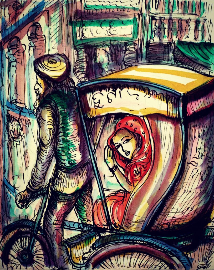 ഒടുക്കം അവരെയും കൊണ്ട് ചവിട്ടുറിക്ഷ മെല്ലെ നീങ്ങുമ്പോൾ സാരിയുടെ മുഖമറയുയർത്തി അവളെന്നെ നോക്കി. ആ നോട്ടത്തിന്റെ വൻ തിരക്കോളിൽപ്പെട്ട് ഞാനും ദോസ്തിയുമുൾപ്പെട്ട ആ നഗരം മുങ്ങിമറഞ്ഞു പോയി.