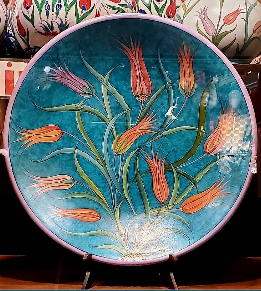 ടൈലുകളിൽ കൊബാൾട്ട് ബ്ലൂ എന്ന നീലനിറം പെയിൻറ് ചെയ്ത ശേഷം അതിന് നിറമില്ലാത്ത പെയിന്റ് കൊണ്ട് തിളക്കം ഉള്ളതാക്കുകയാണ് ഇവിടെ ചെയ്യുന്നത്. ടൂലിപ് ഡിസൈൻ വ്യത്യസ്ത നിറങ്ങളിലും സ്റ്റൈലിലും വരച്ച ധാരാളം കളിമൺ പാത്രങ്ങളും ജഗ്ഗുകളും മറ്റും അവിടെ കണ്ടു. ഓട്ടമന്മാരുടെ ഭാഗ്യചിഹ്നമായി ടുലിപ് കരുതപ്പെടുന്നതുകൊണ്ട് ഇത്തരത്തിലുള്ള ഡിസൈനുകൾ ചെയ്ത പാത്രങ്ങൾക്ക് വലിയ വിലയാണ്.