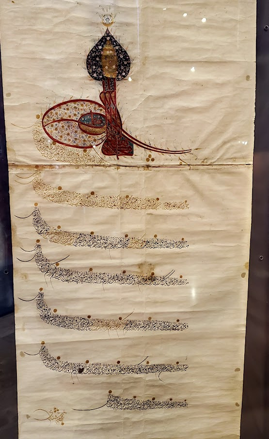 കയ്യെഴുത്ത് പ്രതികളുടെ പ്രത്യേക വിഭാഗത്തിൽ ഏകദേശം 13000 ഐറ്റങ്ങൾ ഉണ്ട്. ഇവയിൽ പലതും അപൂർവ്വങ്ങളാണ്. ഉദാഹരണത്തിന് എട്ടാം നൂറ്റാണ്ടിലെ കൈകൊണ്ട് എഴുതിയ ഖുർആൻറെ രണ്ടു പേജുകൾ, ഒമ്പതാം നൂറ്റാണ്ടിൽ നിന്നുള്ള ഗസേല മാനിന്റെ തോലിൽ സ്വർണ്ണം കൊണ്ട് കുബിക് ശൈലിയിൽ എഴുതിയ ഖുറാന്റെ വരികൾ, എന്നിവ. സുലൈമാൻ മാഗ്നിഫിസന്റിന്റെ മുദ്ര തന്നെ ഒരു സുന്ദരമായ കലാരുപമാണ്.