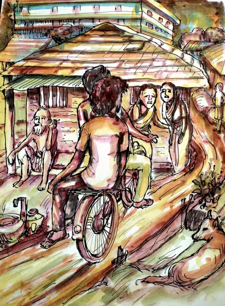 ‘നമ്മൾ കാട്ടിലായിരുന്ന സമയത്ത് അനിയത്തീടെ കല്യാണം നടന്നിരുന്നു. കെട്ടിയോൻറെ പേര് ചന്ദ്രൻ. മിടുക്കനാ. അവൻ വാടകക്ക് എടുത്ത വീട്ടിലാ എല്ലാവരും താമസം. ആകെ ഒരു ദോഷമേ ചന്ദ്രനുള്ളൂ. കിട്ടുന്നതു മുഴുവൻ കള്ളുകുടിച്ചു കളയും. അവനും അവളും അതു പറഞ്ഞ് എന്നും വഴക്കാ. എല്ലാം കൂടെ വീട്ടീന്ന് എറങ്ങ് എന്നു പറഞ്ഞ് അവൻ ചീത്ത വിളിക്കും. എന്റെ അമ്മയും അച്ഛനും അനിയത്തീം കൂടി അവനെ കുനിച്ചു നിർത്തി ഇടിക്കും. രാവിലെയായാ ഒന്നും നടക്കാത്ത പോലെ അവനും എന്റെ അച്ഛനും പണിക്കുപോകും.’