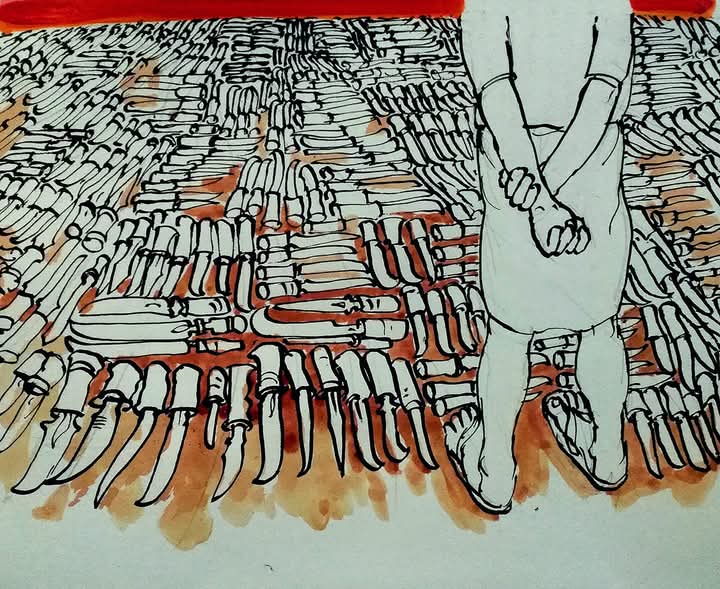 “ഞാൻ ഏതായാലും കത്തി വാങ്ങും മുന്നേ കരാട്ടെ ക്ലാസിനു കൂടി പോവുമമ്മെ.തീർച്ച. എന്നിട്ട് വേണം അവനിട്ട് ഒന്നുങ്കൂടി പൂശാൻ..”