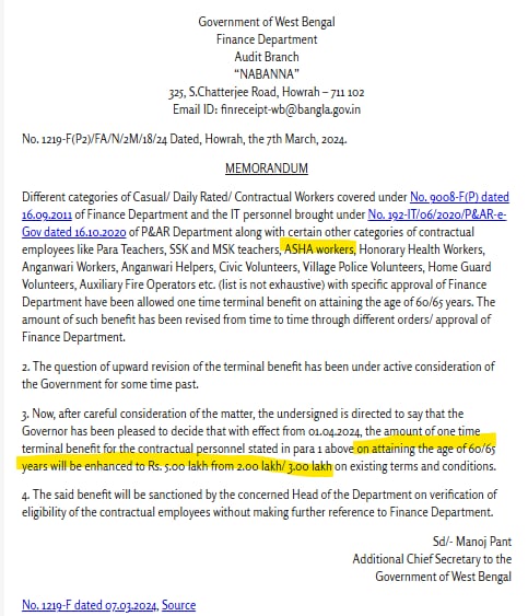 എന്തായാലും ഇവിടുത്തെ ഇടത് ലേബൽ രാഷ്ട്രീയക്കാർക്ക് കണ്ണെടുത്താൽ കണ്ടുകൂടാത്ത മമ്താ ബാനർജി പശ്ചിമ ബംഗാളിൽ ഓരോ ആശാ സഹോദരിയും 62 വയസ്സിൽ വിരമിക്കുമ്പോൾ ആനുകൂല്യമായി അഞ്ച് ലക്ഷം രൂപ നൽകുന്നുണ്ട്. അവിടെയും ആശാ കേന്ദ്രാവിഷ്കൃത പദ്ധതി തന്നെയാണല്ലോ. ഇടത് ലേബലില്ലാത്ത തൃണമൂൽ കോൺഗ്രസ്സ് പക്ഷെ ഇക്കാര്യത്തിൽ ഇടത് ചിന്തയാണ് പ്രദർശിപ്പിക്കുന്നത് എന്ന കാര്യത്തിൽ തർക്കമില്ല.