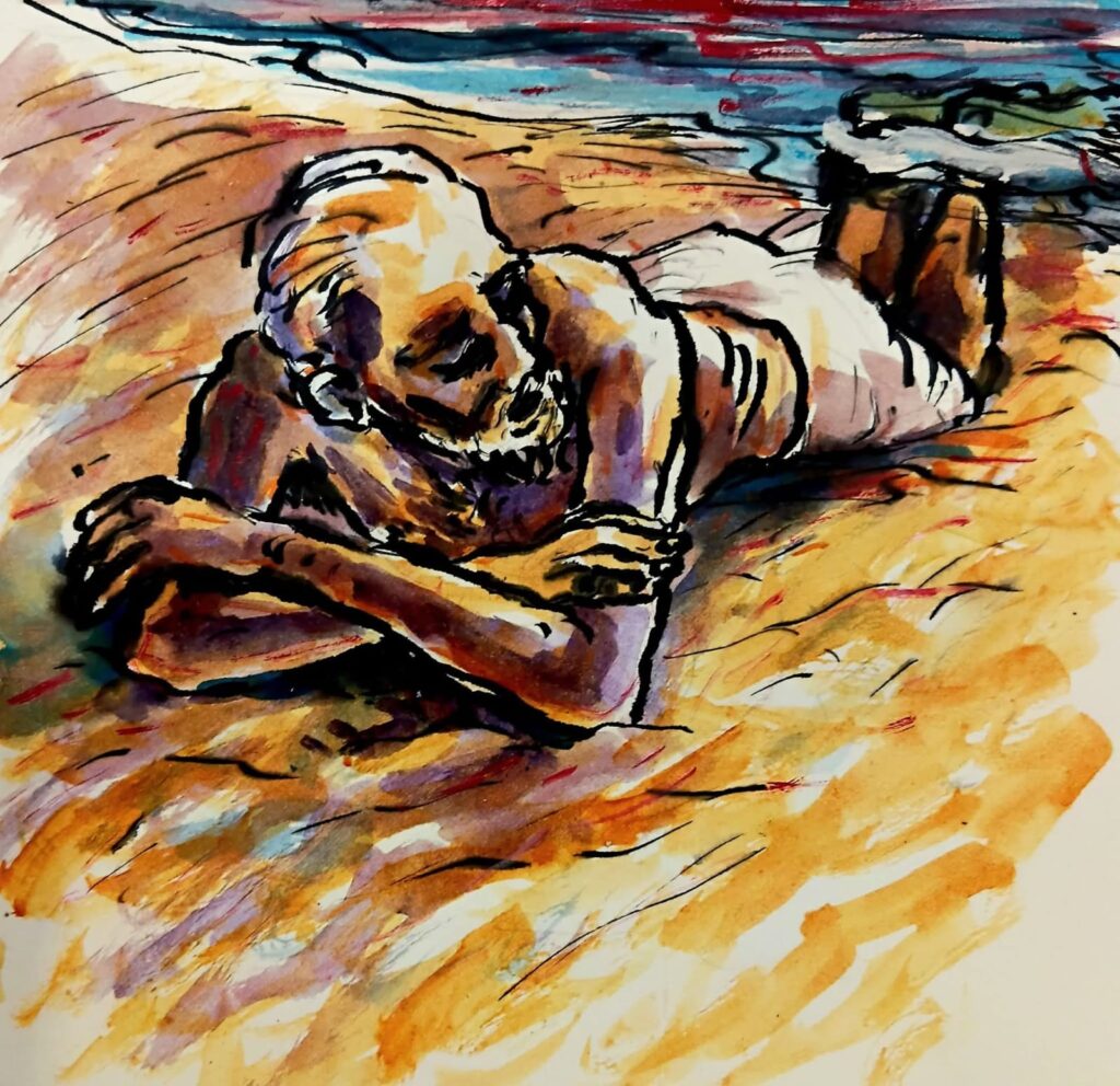 ഞാൻ അയാളെ നോക്കാതെ തിരിഞ്ഞു നടന്നു. കുറച്ചു അകലെ പോയി ഞാൻ പൂഴിയിൽ കമിഴ്ന്നു കടന്നു. തല ചുറ്റുന്നത് പോലെ… കുറച്ചു കഴിഞ്ഞു കാലുകൾ നനയുന്നത് പോലെ തോന്നി. പെട്ടന്ന് ഞാൻ ചാടി എഴുന്നേറ്റു. എന്‍റെ കാലുകൾ ബന്ധിക്കപ്പെട്ടതുപോലെ . കണ്ണു തിരുമ്മി നോക്കിയപ്പോൾ എന്‍റെ കാലുകൾക്ക് ചുറ്റും തിരകൾ കൊണ്ടുവന്ന ഒരു തോർത്തായിരുന്നു. അതു ഞാൻ എവിടെയോ കണ്ടിട്ടുള്ളതുപോലെ എനിക്ക്‌ തോന്നി. അതെ, അതു കുറച്ചു മുൻപ് അയാൾ ഉടുത്ത അതേ നനഞ്ഞു കുതിർന്ന തോർത്തായിരുന്നു.