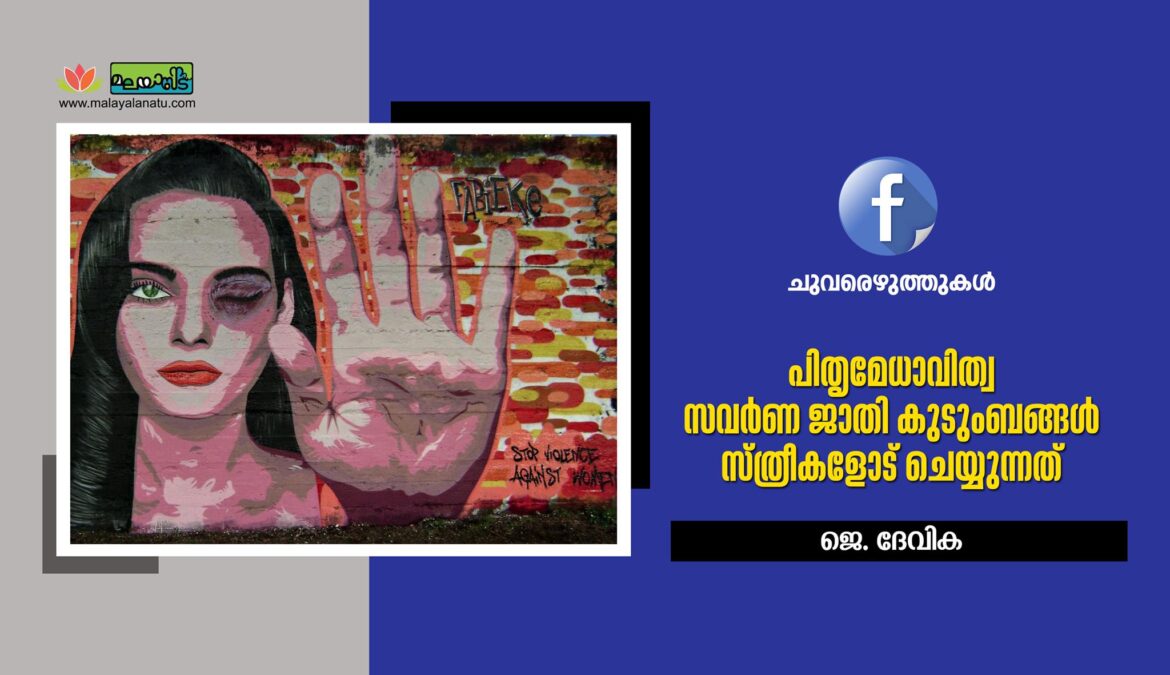 പൂമുഖം ചുവരെഴുത്തുകൾ പിതൃമേധാവിത്വ സവർണ ജാതി കുടുംബങ്ങൾ സ്ത്രീകളോട് ചെയ്യുന്നത്